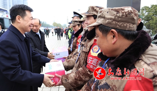 郭青一行先后到市公安局漢濱分局綜合執(zhí)法辦案管理中心、中心城區(qū)金州廣場街面智慧指揮聯(lián)控平臺執(zhí)勤點、漢濱區(qū)新城派出所等地,親切看望公安巡警、特警、交警、執(zhí)勤民警和紅袖章義務(wù)巡邏隊員等一線執(zhí)勤人員。每到一處,他都與大家一一握手并親切交談。他指出,過去一年,全市公眾安全感連續(xù)三年全省第一,平安建設(shè)知曉率、掃黑除惡專項斗爭群眾知曉率全省第一,為全市發(fā)展穩(wěn)定作出了突出貢獻(xiàn),凝聚了全市政法系統(tǒng)尤其是廣大公安干警的汗水和奉獻(xiàn),甚至是流血和犧牲。郭青向大家表示崇高敬意,帶去了市委、市政府的關(guān)心和慰問,并向全市廣大公安干警及親屬拜年。