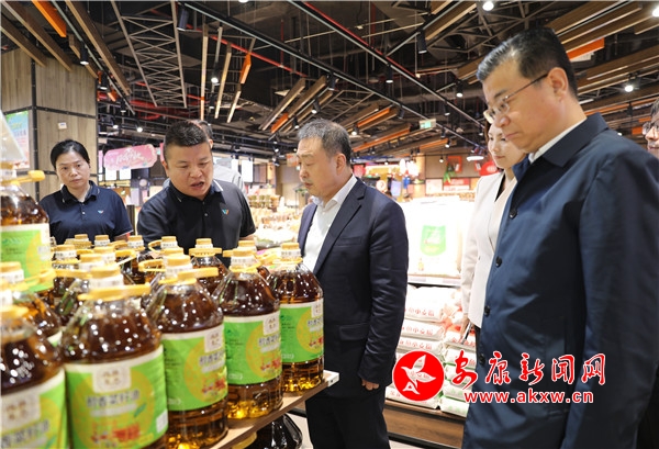 在吾悅廣場萬友水果蔬菜超市,武文罡邊走邊看,詳細(xì)詢問商品價格、物資供應(yīng)儲備、食品安全責(zé)任落實等情況,要求密切監(jiān)測生活必需品供銷情況,暢通貨源渠道,做好供需對接,強(qiáng)化市場監(jiān)管,全力保障“雙節(jié)”期間市場供應(yīng)充足、品種豐富、價格平穩(wěn)。
