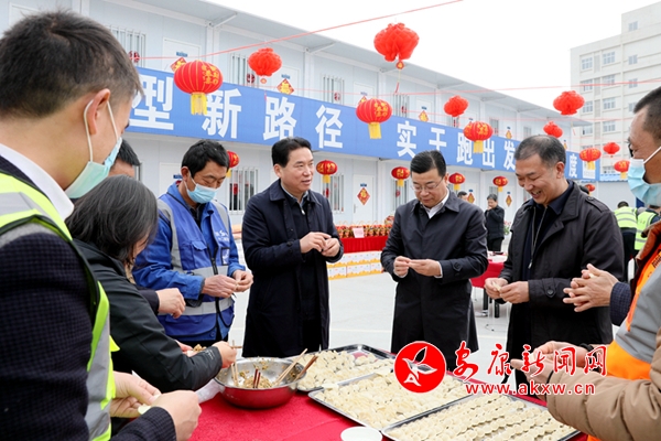在陜建十二建高新區(qū)路網(wǎng)項(xiàng)目工地,趙俊民一行親切看望響應(yīng)號召留守安康、就地過年的施工人員,并同大家一起包餃子、吃團(tuán)年飯,共同分享迎新納福的喜悅。趙俊民勉勵大家,無論來自何方、家在何處,都是推動發(fā)展的建設(shè)者、參與者、見證者,希望大家在安康舒心過節(jié)、安心工作。各級各部門要強(qiáng)化政策落實(shí)和保障措施,為就地過年人員提供良好的工作和生活環(huán)境,讓他們以安康為家,歡歡喜喜地過個(gè)幸福年。