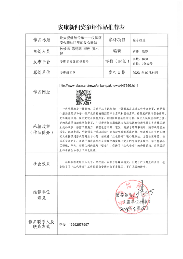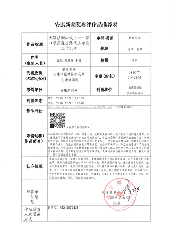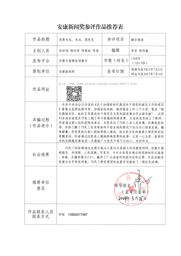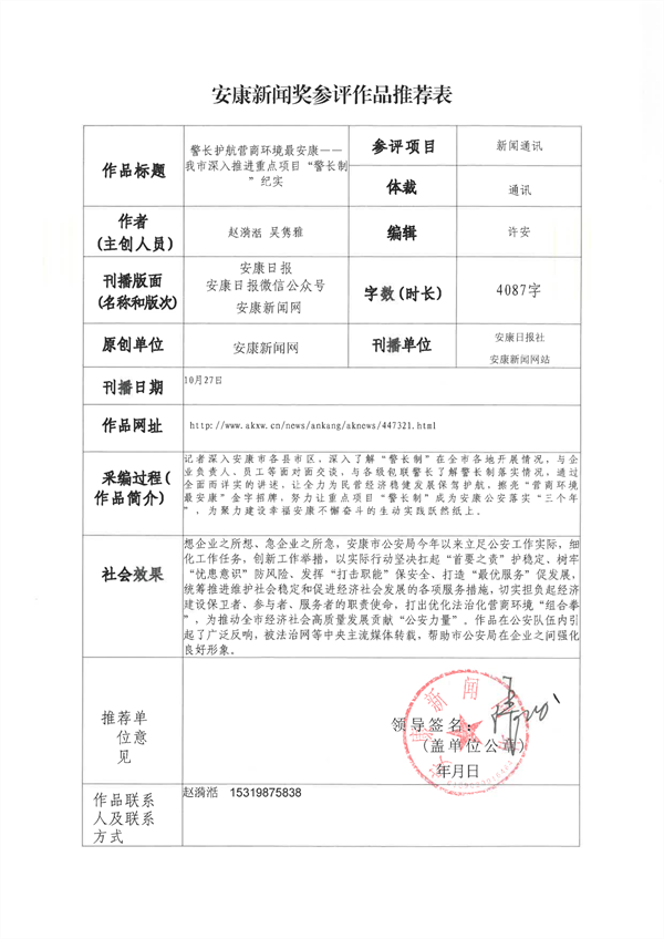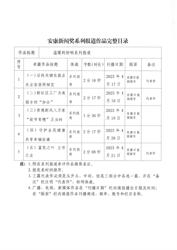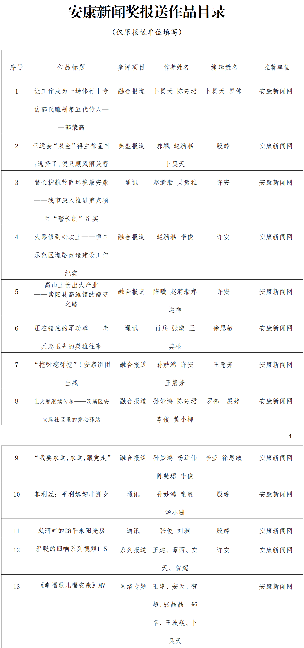 經(jīng)過(guò)編委會(huì)推薦、社黨委研究決定,擬推薦以下13件新聞作品參評(píng)2023年度“安康新聞獎(jiǎng)”。公示時(shí)間從2024年3月25日至2024年3月29日,公示期為5個(gè)工作日。如有不同意見,請(qǐng)向安康日?qǐng)?bào)社機(jī)關(guān)紀(jì)委、新聞管理部反映。nyB安康新聞網(wǎng)