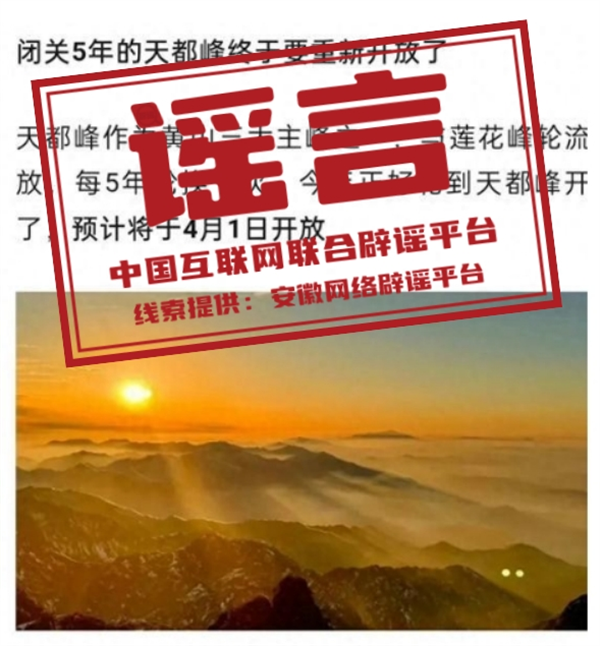謠言:黃山天都峰4月1日結(jié)束輪休對外開放?