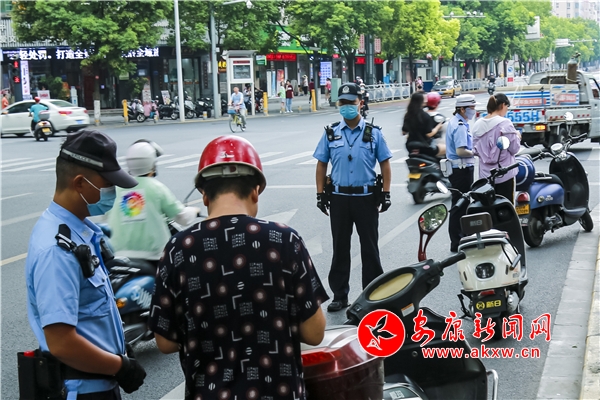 8 月1 日,交警中隊派員在城區(qū)十字路口,檢查違法違紀(jì)車輛。(李春江)