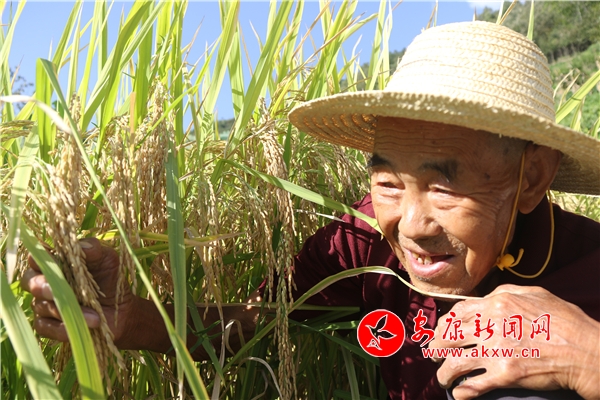 “稻花香里說豐年”。桂花村2組許道生老人,今年雖已87歲高齡,卻精神矍鑠,常年為了家里 “一畝三分地”而辛勤勞作。78歲的老伴很是心疼,在照顧他生活起居的同時,還關(guān)顧著孫子,膝下一兒兩女都忙各自的事,生活也很充實(shí)。面對豐收,老人喜不自禁,自述他種的兩畝水田保守估產(chǎn)將達(dá)3000多斤,用他的話說:“這可是我們嵐皋最好的米,過去還是貢米吶。”