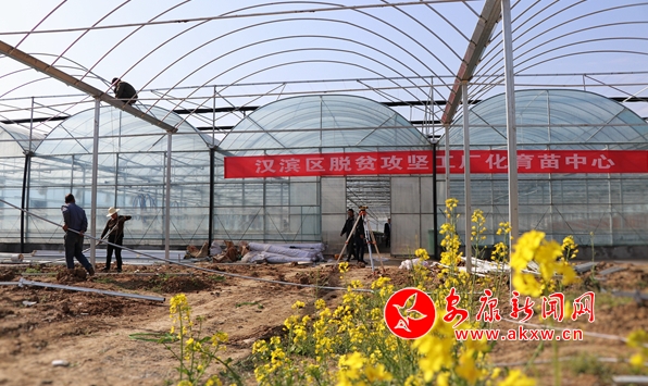 漢濱區(qū)育苗中心一片春意盎然,辣椒、茄子、黃瓜、西紅柿等幼苗青翠欲滴,園區(qū)工人們正在進行緊張的育苗工作。
