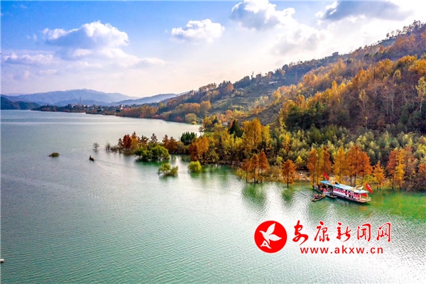 深秋時(shí)節(jié),蔚藍(lán)的天空一塵不染,晶瑩明澈,朵朵云霞映照在碧波如洗的瀛湖水間,分外絢麗。nmc安康新聞網(wǎng)