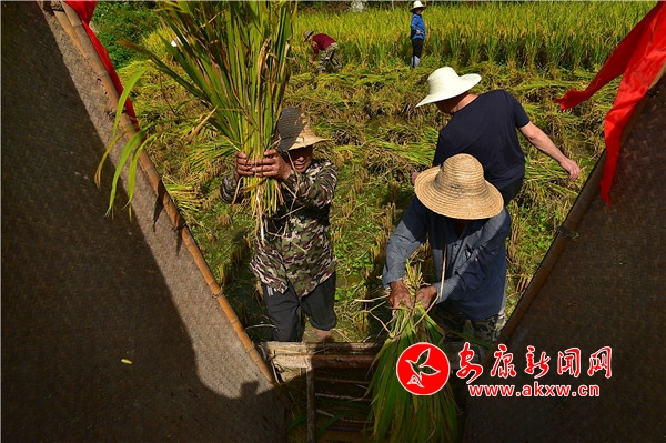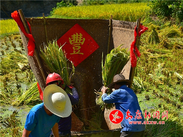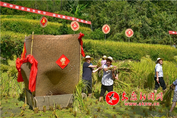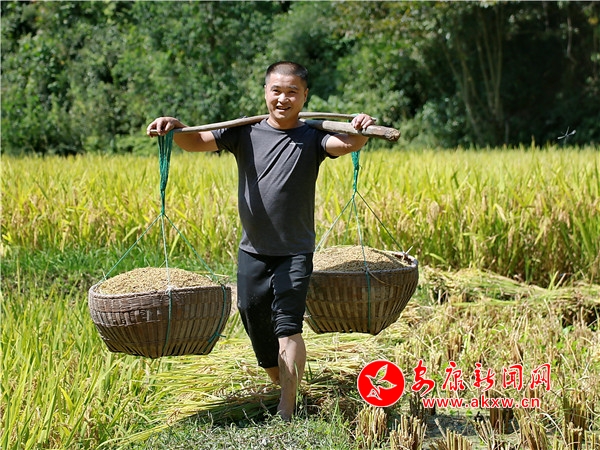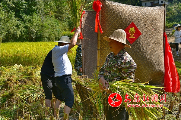秋日,平利鄉(xiāng)村田園間梯田層層,稻浪滾滾,飽滿的谷穗壓彎了稻桿,放眼望去,遍野鋪金,空氣中也彌漫著淡淡的稻香。在西河鎮(zhèn)女媧山村三里溝原生態(tài)水稻田里,人們按照傳統(tǒng)的習(xí)俗和方式收割水稻,數(shù)十位村民手持鐮刀一字排開,迅速揮舞著手中的鐮刀,將金黃的稻穗割下并整齊的堆放。打谷人則分為兩組,兩人一組,交叉替換的將手中的稻秧在拌桶里反復(fù)甩打脫粒,拌谷聲“嘭呲嘭呲”有節(jié)奏地作響,聲勢(shì)頗為壯觀。與此同時(shí),廣佛鎮(zhèn)松河村李家坡的農(nóng)家小院已堆滿收回來(lái)的苞谷,郭老漢正在將苞谷殼撕開,編成串掛在屋檐下的竹竿上晾曬,金黃的苞谷棒子整齊排列,儼然一幅鄉(xiāng)村小院秋實(shí)圖。tdf安康新聞網(wǎng)