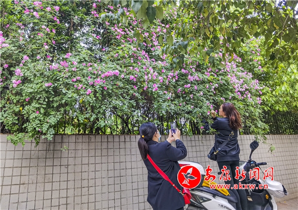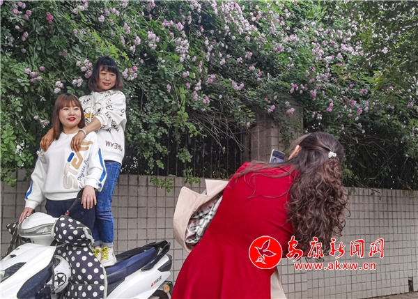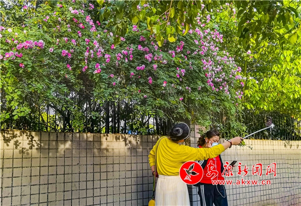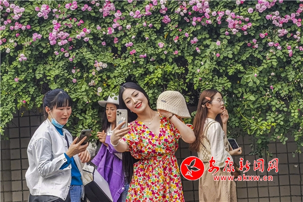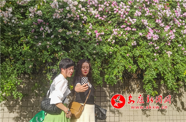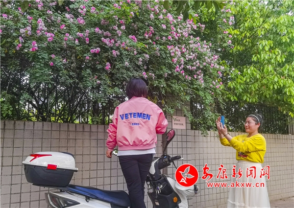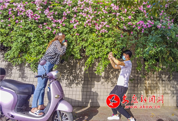 近日,安康東堤外的漢寧宮院墻上的薔薇花盛開,成了安康的網紅打卡地,每天吸引了數(shù)百人到此賞花拍照。(圖文/陳德模)