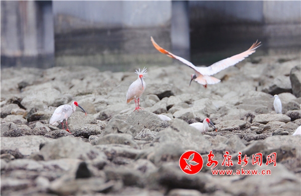 連日來(lái),石泉縣城漢江邊的一處處河水淺灘,迎來(lái)大量朱鹮、白鷺、蒼鷺等水鳥覓食,它們時(shí)而展翅翱翔,時(shí)而嬉水歡舞,享受大自然綠色生態(tài)帶來(lái)的愜意。(圖文/許兵)uYa安康新聞網(wǎng)