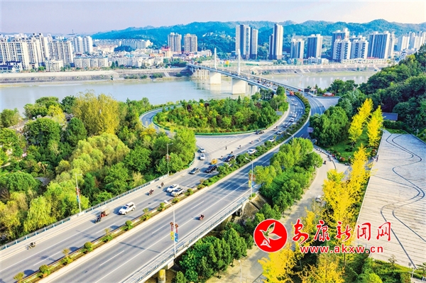 金秋時(shí)節(jié)的安康西津漢江大橋北。潘潤生 攝