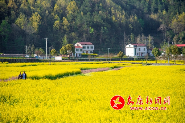 近日,石泉縣中池鎮(zhèn)境內(nèi)的油菜花競相開放,金黃的油菜花田與村落民居交相輝映,一幅田園風景畫惹人陶醉。儲招賢 攝