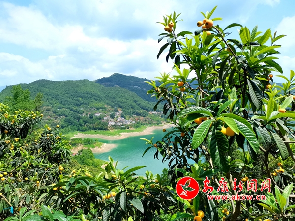 五月的瀛湖碧水藍(lán)天,綠意盎然,漫山遍野的金色枇杷掛滿枝頭,碩果累累,一派豐收的景象。瀛湖枇杷以汁多味美 、酸甜可口著稱,贏得市民和外地客商的青睞。(陳榮斌 攝)Nua安康新聞網(wǎng)