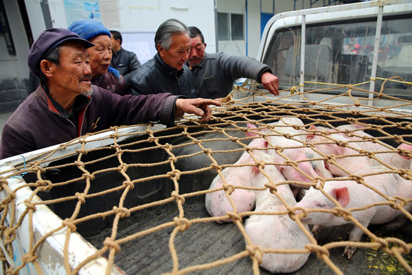 3月7日,花石村的貧困戶正在領(lǐng)取免費(fèi)豬仔安康新聞網(wǎng)訊(通訊員 楊寧)“今年開年后,鎮(zhèn)上和部門的干部多次來我家。先是到我家來了解情況,春節(jié)還給我們送來了米……