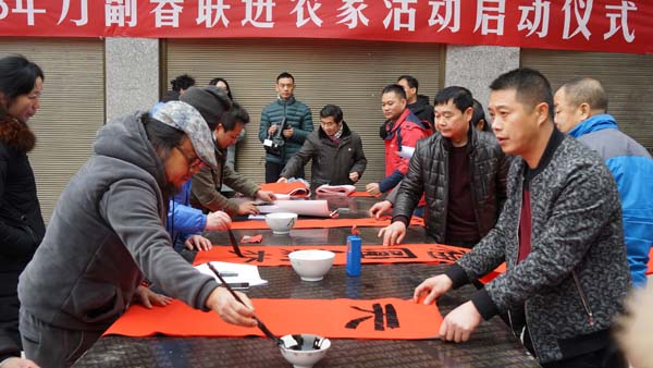 安康新聞網(wǎng)訊(通訊員 惠星)1月23日,漢濱區(qū)2018年“萬(wàn)副春聯(lián)進(jìn)農(nóng)家”活動(dòng)在漢濱區(qū)新城辦金川社區(qū)啟動(dòng),來(lái)自漢濱區(qū)文化館、區(qū)美術(shù)家協(xié)會(huì)、區(qū)書(shū)法家協(xié)會(huì)的書(shū)畫(huà)家……