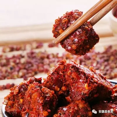 安康,一般這里的人只接受紅腐乳,(因?yàn)榘赘楹颓喔檫是很臭的),每個(gè)縣區(qū)都有自己做豆腐乳的絕招,也有每個(gè)縣的特色,有的地方認(rèn)為豆腐乳越臭越好吃,有的則覺(jué)得辣的好吃,甚至有的直接帶毛吃(此處一會(huì)給具體解釋)。