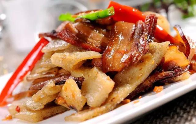 洋芋粑粑炒臘肉原是鎮(zhèn)坪老百姓桌上的家常小菜。是用洋芋制品和鎮(zhèn)坪特色臘肉合成的一道菜肴。新鮮的洋芋粑粑,配以鮮紅的五花臘肉,洋芋粑粑充分吸收了臘肉的油脂,顯的越發(fā)的飽滿晶瑩。再加入新鮮的本地辣椒,花椒,蒜片,蔥節(jié),姜片。用農村燒柴禾的大鐵鍋煎炒,誘人的醇香散發(fā)著濃濃鄉(xiāng)情,紅黃白綠色澤鮮亮,臘肉肥而不膩,洋芋粑粑滑潤爽口。