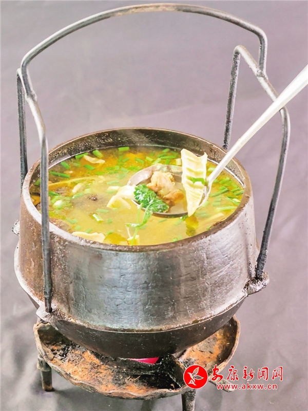 漢陰縣城關(guān)鑫遙農(nóng)莊——白火石汆湯陜西省非物質(zhì)文化遺產(chǎn)之一,中國(guó)最古老的烹飪菜肴中的“活化石”。將白石脂燒紅后汆入湯中,用石頭的熱量將食材激熟……