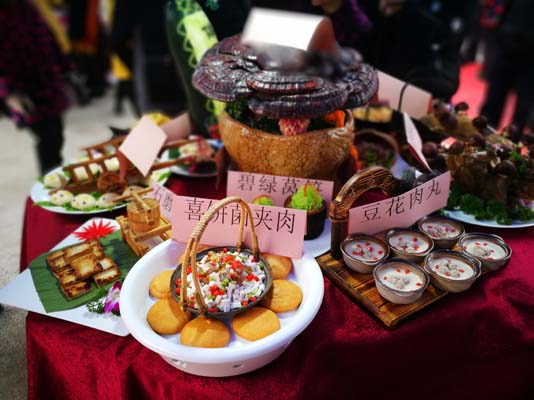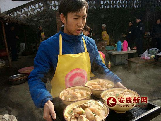 ■ 黃平安“庖湯”, 也有人寫(xiě)作“泡湯”!芭轀辈皇恰俺燥埡葴保膊皇恰皽厝菰琛,它是陜南農(nóng)家冬季殺年豬時(shí)用現(xiàn)殺的豬肉為主料做成的宴席,農(nóng)家用它宴……