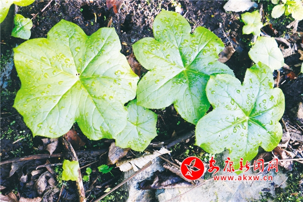 春夏之交,一種頭頂花骨朵的植物悄悄鉆出地面,舒展著婆娑的身姿,不幾天便撐開八個(gè)角的圓形薄紙質(zhì)葉片,在微風(fēng)中風(fēng)情搖曳,宛如撐著綠色油紙傘的高貴夫人。她就是八角蓮,又因葉面低凹成碗狀可集雨露,民間俗稱“一碗水”。