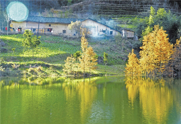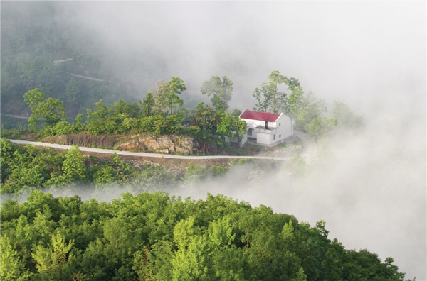在水中,一條油潤潤的小路,融匯了大地的物語,春雨的澆注,還有輕輕觸碰就會(huì)變幻的神秘。道路的兩邊,是造型夸張要滴出翠來的植物,阻擋了行人的腳步,牽絆了路人的衣服,會(huì)給那些衣服沾染上艷麗的花粉,在深夜里都會(huì)散發(fā)出一股醉人的清氣,仿佛有什么該想而未想,心里蘊(yùn)滿了不能為人道皎潔的白月光。沿著那條路,就是在水中宛若樓臺(tái)亭閣一般的房屋,黑瓦房、白墻壁,杏花、桃花、茉莉花爭相簇?fù),房子便如置身其中的嬰兒了。還有小奶狗在屋前悠閑地打盹,太陽直射下來,貓也走來湊湊熱鬧,貓的眼睛碧藍(lán)澄澈,仿佛天使之瞳,總是帶著先知或者驚異審視的表情……而與此相對的,就是炊煙了,唯有炊煙將我們拉回世俗庸常之中,飯菜的香氣,去年果木熏的臘肉,農(nóng)家自己釀的一碗包谷燒,啊,真想喝點(diǎn)小酒,酒的美妙不在于入口的辛辣,而在于微醺之時(shí),那種難以控制的快樂!古來圣賢皆寂寞,唯有飲者留其名,明天的事,明天再說吧!