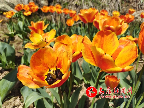 從遠(yuǎn)處望去,郁金香整整齊齊地排列著,陣陣微風(fēng)吹過,搖曳生姿。湊近看,郁金香花一朵挨著一朵,花瓣重疊,鮮艷得像要滴出水來。時(shí)不時(shí)還有幾只蝴蝶蜜蜂縈繞在花間,享受著春天帶來的絲絲甜蜜。在暖陽的照耀下,盛開的花朵隨春風(fēng)搖曳,不同顏色、不同品種的郁金香呈現(xiàn)出了極佳的視覺效果,花叢中,游客三五結(jié)伴,賞花、拍照,享受繁花繞膝之美。