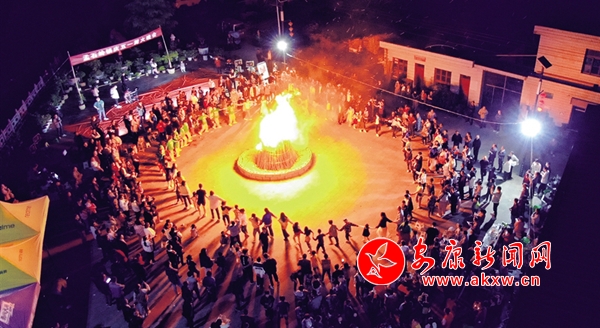 “五一”勞動(dòng)節(jié)當(dāng)日,在嵐皋縣孟石嶺鎮(zhèn),一場篝火晚會火熱舉行。全鎮(zhèn)干部群眾及外來游客紛紛前來享受頗具地方特色的娛樂活動(dòng)。楊倩 楊文君 攝