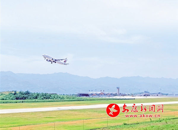5月1日上午,一架客機(jī)離開安康富強(qiáng)機(jī)場。如今立體的交通網(wǎng)絡(luò)大大方便了安康人出行,同時(shí)也方便游客來安康旅游觀光。陳德模 攝