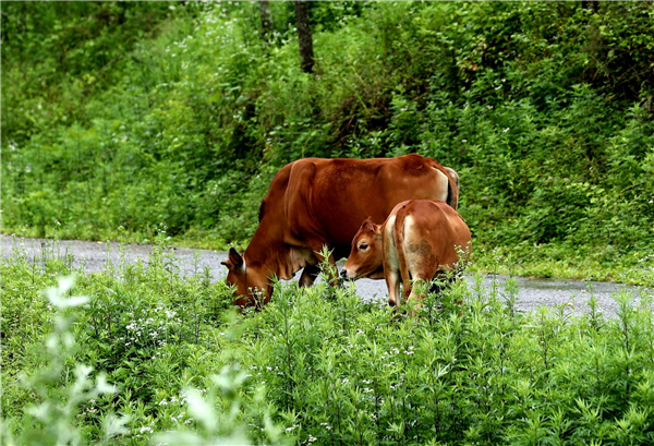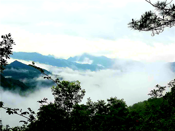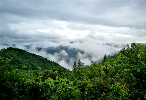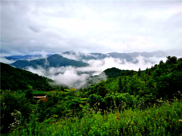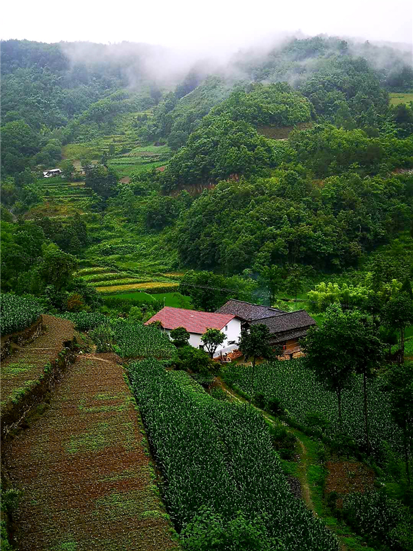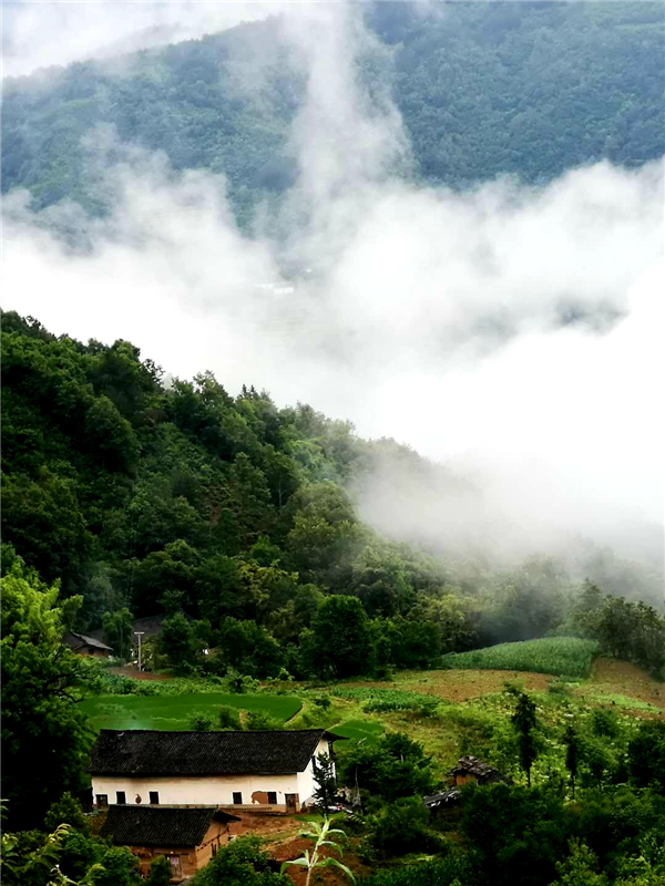 小橋,山澗的溪流;田園,吃草的耕牛;花草,池塘的荷花......一邊淋著淅淅瀝瀝如發(fā)如絲的毛毛細(xì)雨,一邊在薄霧朦朧中散步,置身在這天然氧吧中,看天看地看山看水看滿山云霧繚繞,看自然和諧之美,看群山簇?fù)砦矣趹驯е校諘珈o謐中汲取一塵不染的力量與信念。極目所致,思緒萬(wàn)千,腦海里寄存的是古人話語(yǔ)“非淡泊無(wú)以明志,非寧?kù)o無(wú)以致遠(yuǎn)”,恐怕也只能是綠水青山中來(lái)實(shí)現(xiàn)自己的理想與愿望吧!